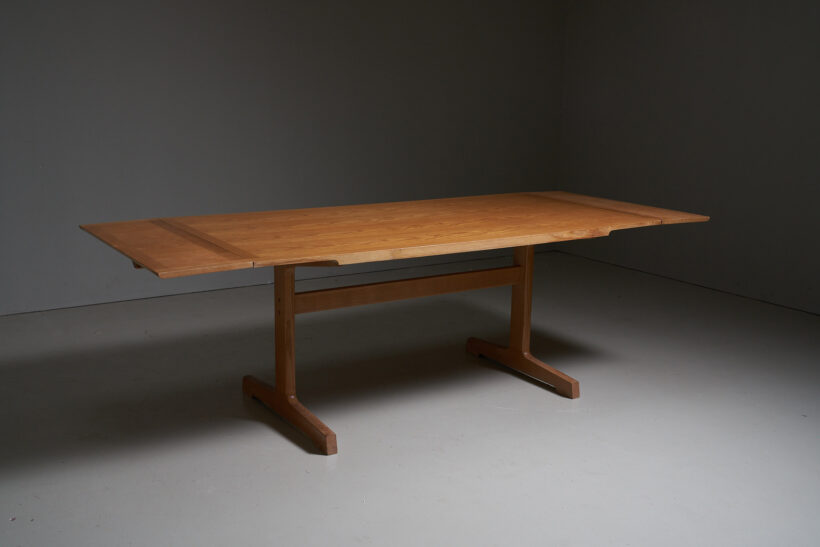 Danish rectangular dining table in oak with 2 extensions. Made in Denmark in the 1970’s by France and Son. The condition is good with normal traces of wear as shown in the pictures.