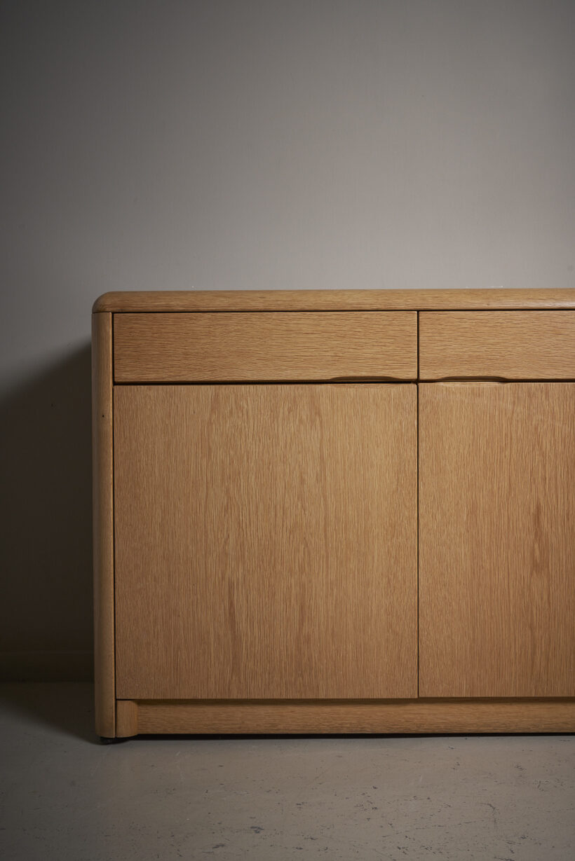 Elegant and high qualitative oak sideboard. Minimal efficiency. Very good condition with light traces of use.
