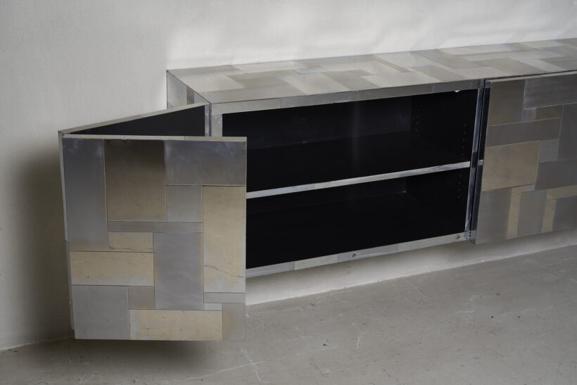 Paul Evans sideboard in a white metal patchwork of finishings. Cityscape series 1970’s USA.