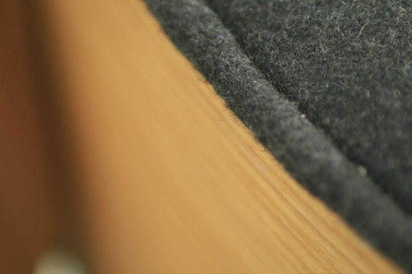 Lounge chair designed by Poul Volther in 1953, newly produced under licence. First wooden version of the later iconic Corona chair. Made in oak and upholstered with soft grey or black felt.