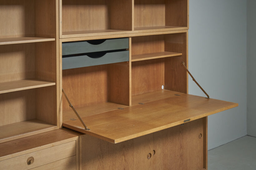 A playful set of cabinets with bookshelves in oak. Timeless design by Børge Mogensen for Karl Andersson & soner in Sweden.